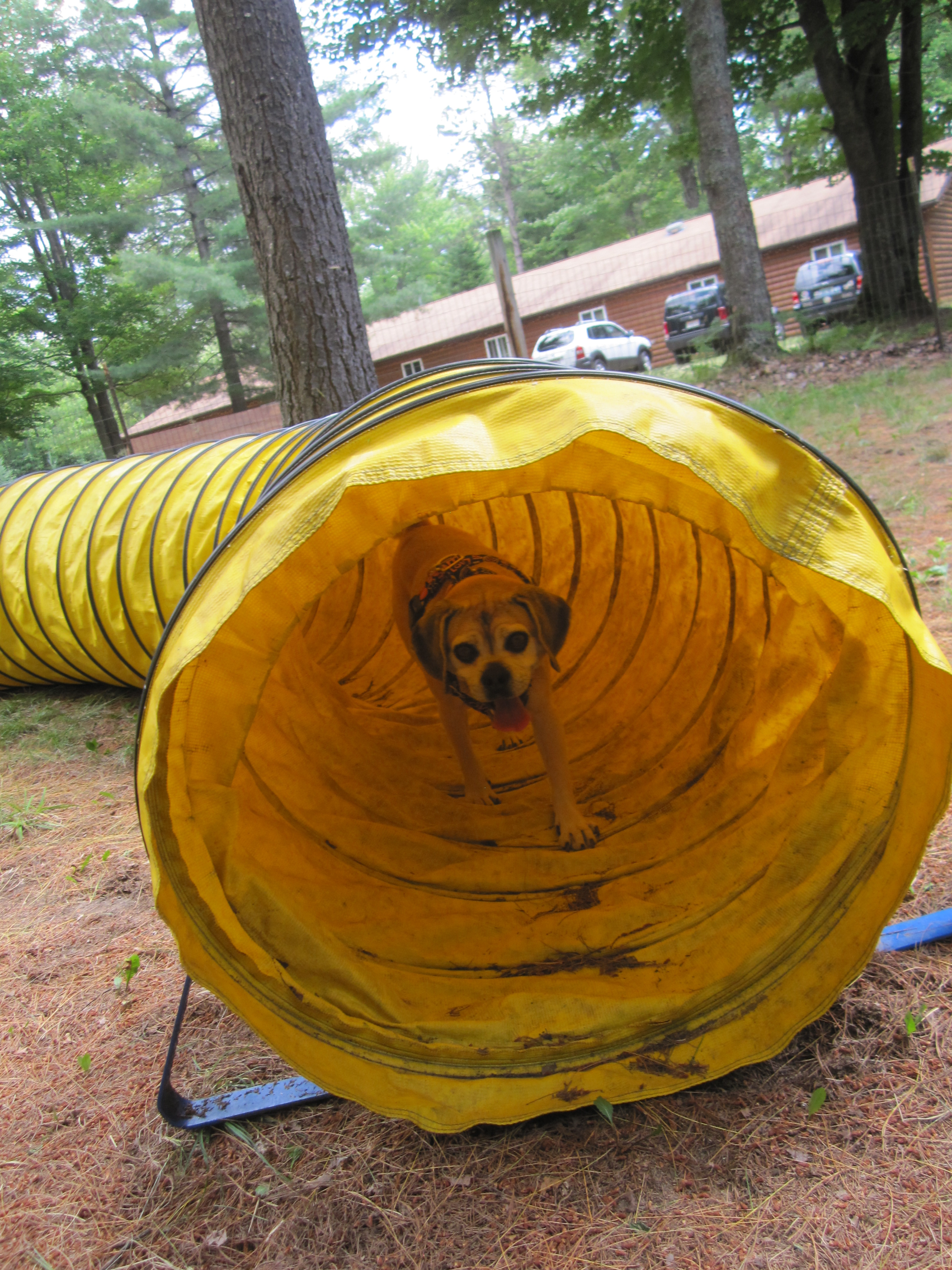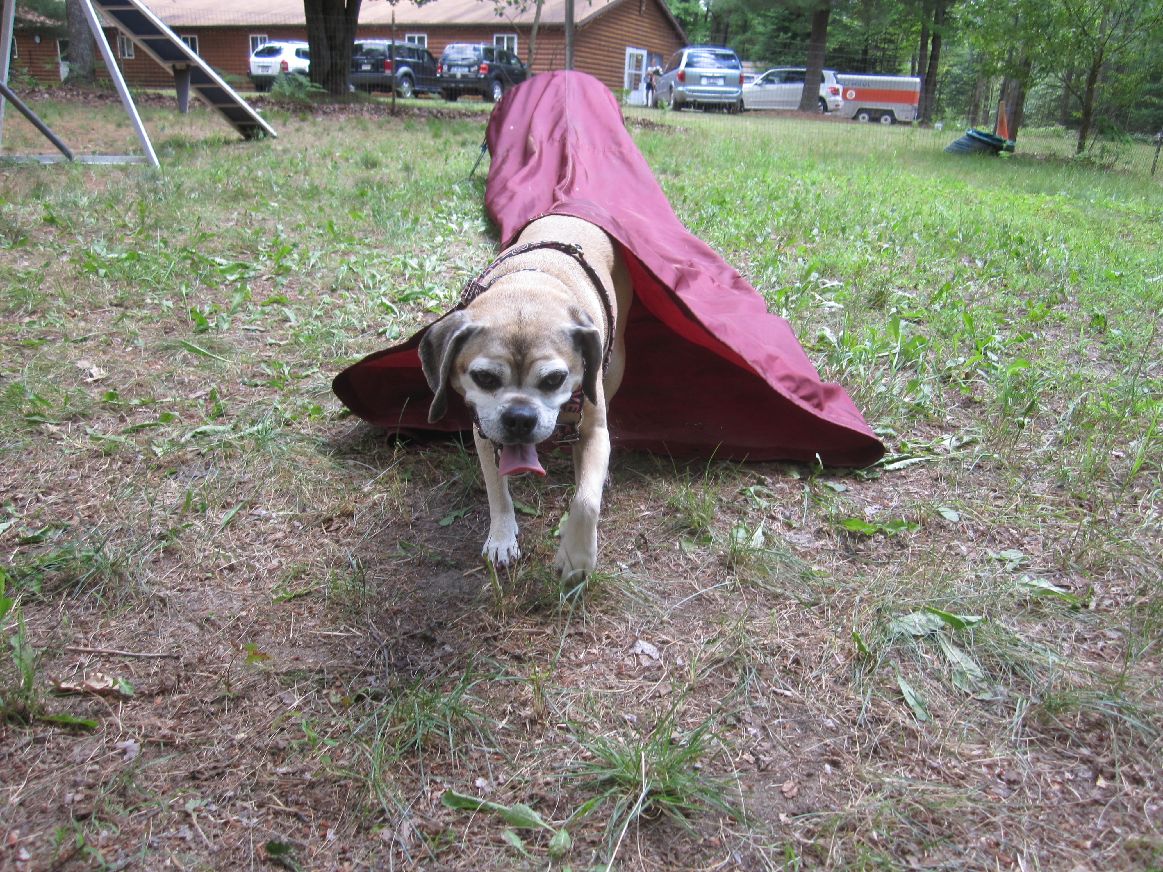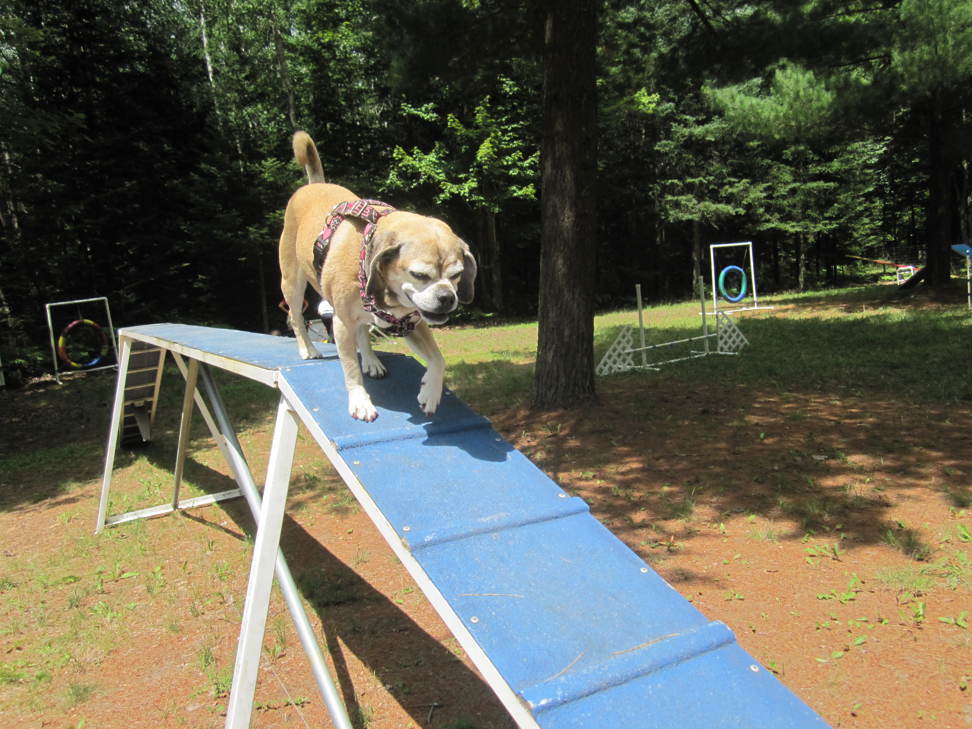 Unfortunately, Zora is scared of the teeter again. Early in the week, she stepped backwards while the teeter was going down and it popped back up on her. Now she’s really scared of it, so we’ll have to work on that.