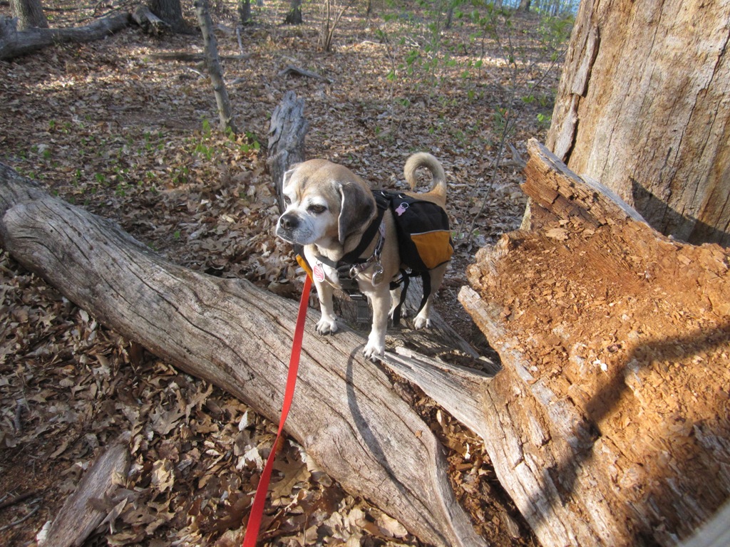 Zora earned her Overnight Camping badge. We carried our packs 1/4 mile out to the campsite. Zora carried her own snack and blanket, in addition to her regular gear. TEN people went on the overnight camping trip! This was the biggest group ever, according to the camp director. Once at the campsite, we pitched our tents and collected firewood. Zora liked the tent and enjoyed hanging out in the tent with her buddy Dyno.