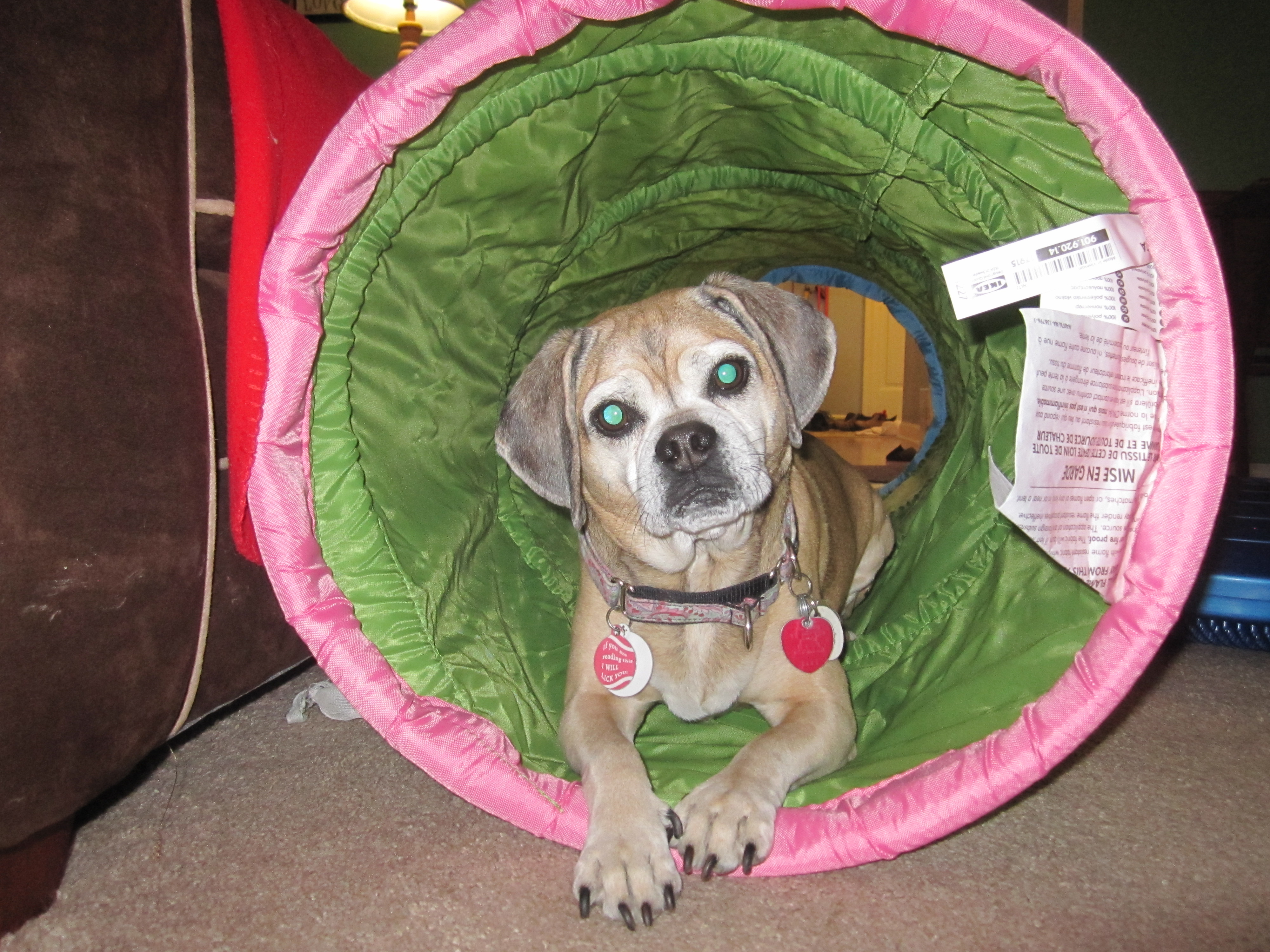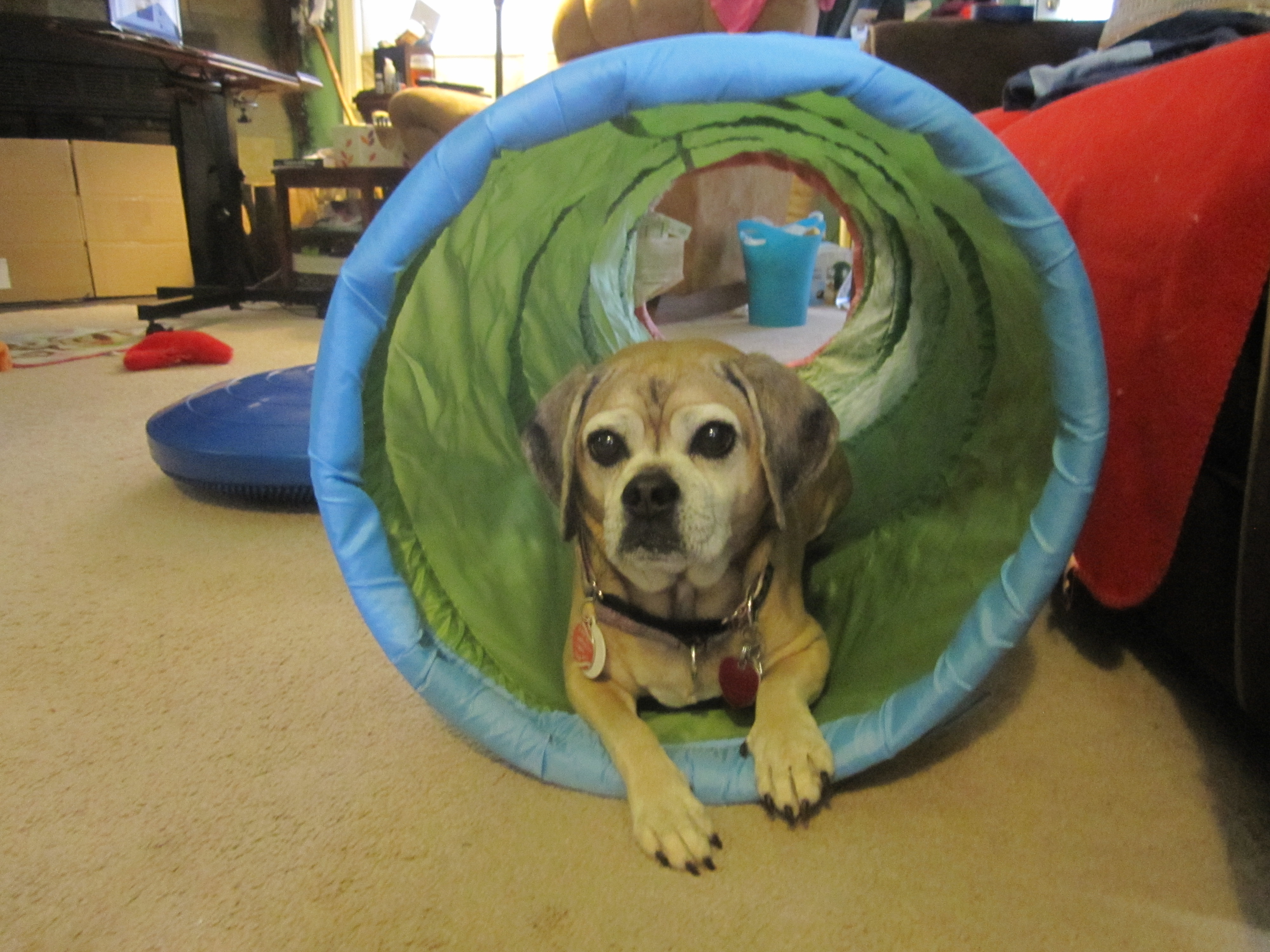 Despite missing a week of agility because I was sick, we did very well in class this week. It was a jumper’s course, with tunnels and jumps. We’ve been practicing the tunnel at home and Zora was great!